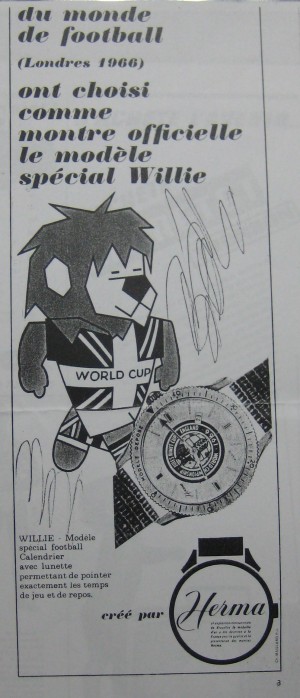The French watch company Herma did produce a wristwatch in 1966 that featured the insignia. World Cup Willie was used in the advertising.